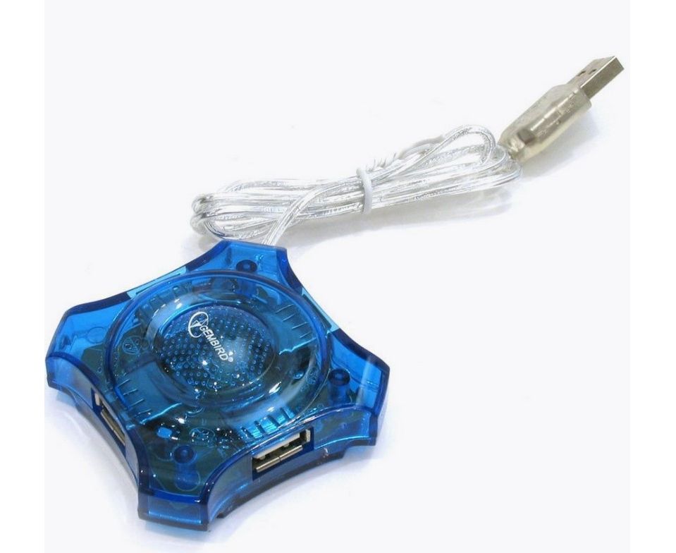 Компактный хаб USB 2.0 Gembird UHB-C224 (размером 7,3х7,3х2,1см). Работает с разнымим видами ПК, ноутбуками и другими USB-совместимыми устройствами.