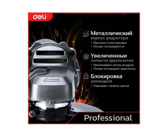 Углошлифовая машинка Deli DE-JM115-1E – профессиональный инструмент, созданный для выполнения различных задач шлифования, резки и обработки различных материалов.