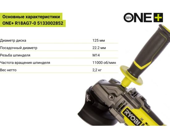 Технические характеристики Ryobi ONE+ R18AG7-0 5133002852