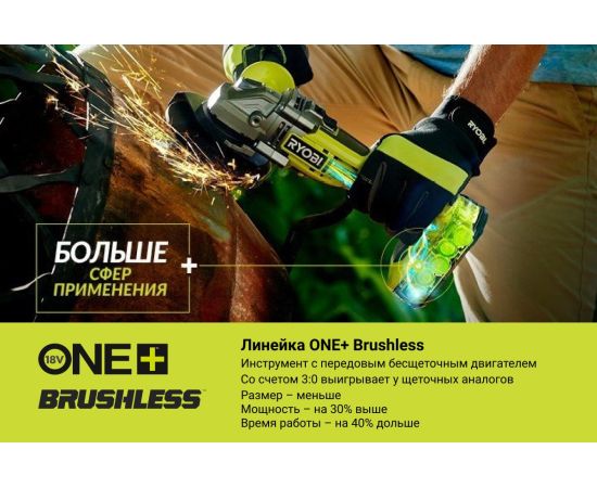 Бесщеточная углошлифмашина Ryobi ONE+ R18AG7-0 5133002852 применяется для шлифования и резки металла, камня. Мощный бесщеточный двигатель в сочетании с аккумулятором серии ONE+ позволяет достичь максимальной производительности.
