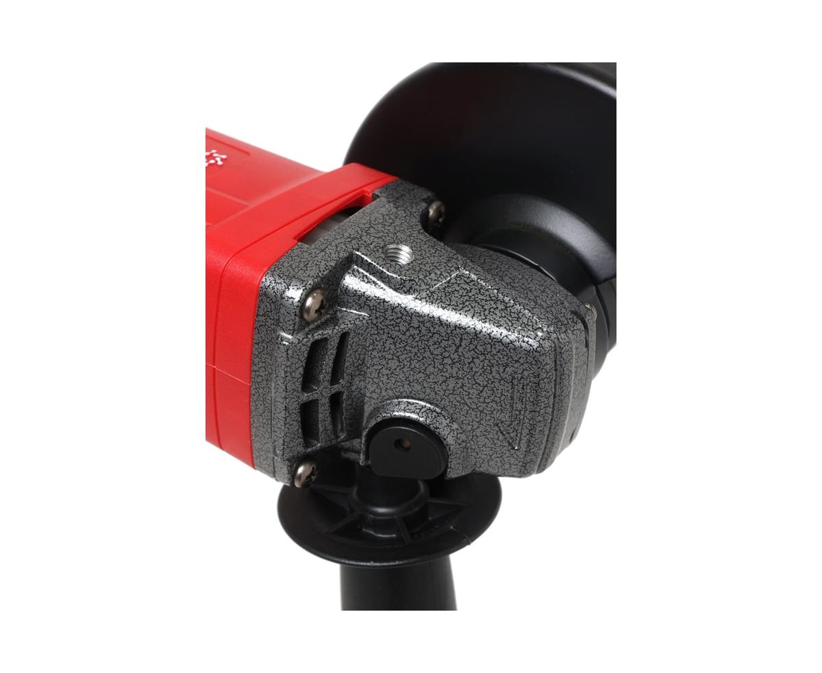 Корпус угловой шлифовальной машины изготовлен из нетоксичных полимерных материалов без характерного запаха дешевого пластика. Для удобства пластиковый корпус в местах соприкосновения с рукой обработан специальным материалом, обеспечивающим противоскользящее покрытие. Небольшой вес угловой шлифовальной машины помогает свести к минимуму усталость рук.