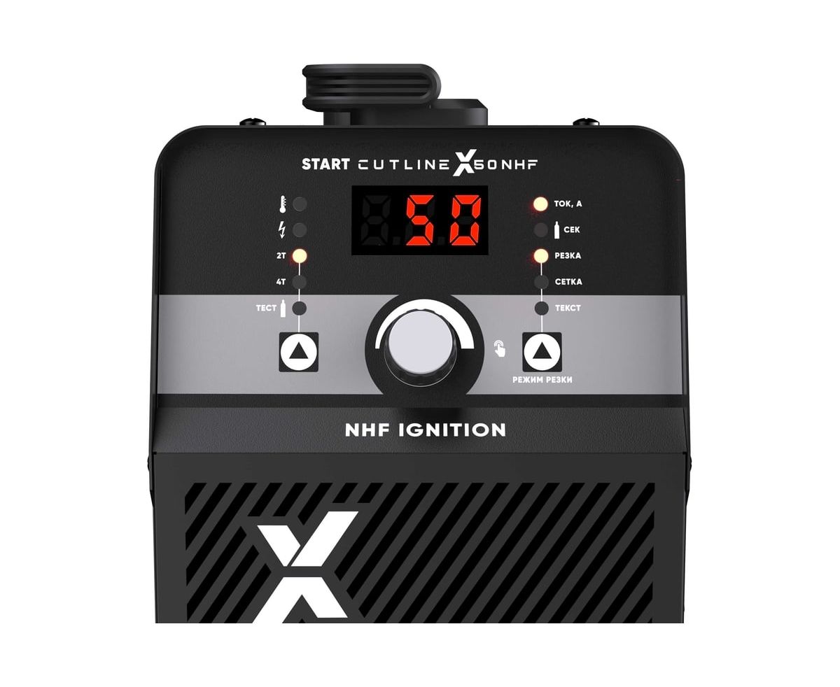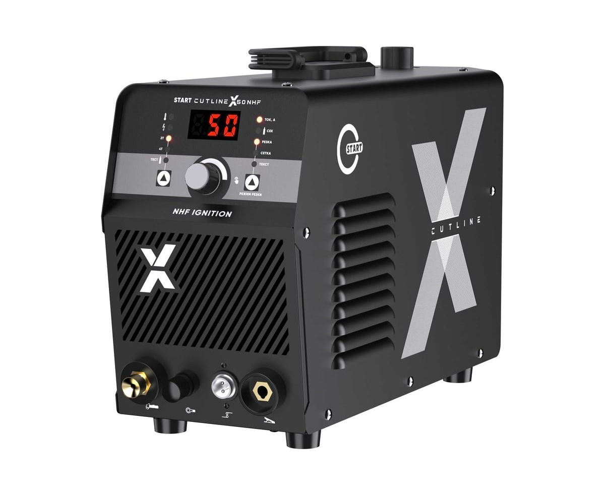 START CutLine X50 NHF - Легкий и компактный источник с пневмоподжигом - подходит для воздушно плазменной резки углеродистой стали, нержавеющей стали, алюминиевых сплавов, меди и других цветных металлов. Источник универсальный – может быть использован как для ручной резки так и в паре с ЧПУ столом.