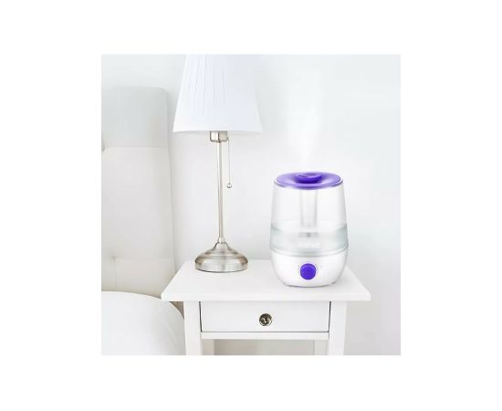 Увлажнитель воздуха Kitfort КТ-2842-1 бело-фиолетовый создает хороший микроклимат для проживания людей. Может использоваться в помещениях и квартирах, площадь которых не превышает 20 м2. Включается прибор при помощи регулятора: при повороте по часовой стрелке раздастся щелчок - значит, увлажнитель включен, при этом загорится индикатор регулятора. Поворачивая регулятор по часовой стрелке, регулируйте степень потока тумана.