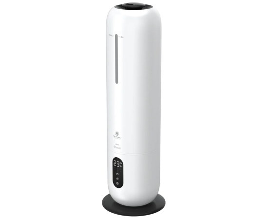 Управление увлажнителем производится при помощи сенсорной панели на передней части корпуса или пульта ДУ. RIVA имеет 3 скорости выхода пара, таймер на отключение, LED-дисплей для индикации уровня влажности. Встроенный гигростат позволяет задать желаемую влажность воздуха. Прибор автоматически будет поддерживать указанное значение.