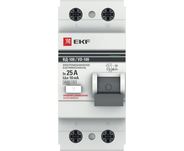 УЗО EKF PROxima ВД-100 2P (elcb-2-25-10-em-pro) 25А/10мА электромеханическое