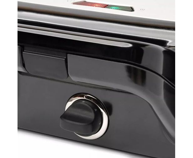 Антипригарное покрытие не позволяет блюдам прилипнуть к панелям. Регулятор температуры, расположенный на корпусе вафельницы, позволяет установить нужную интенсивность нагрева панелей.