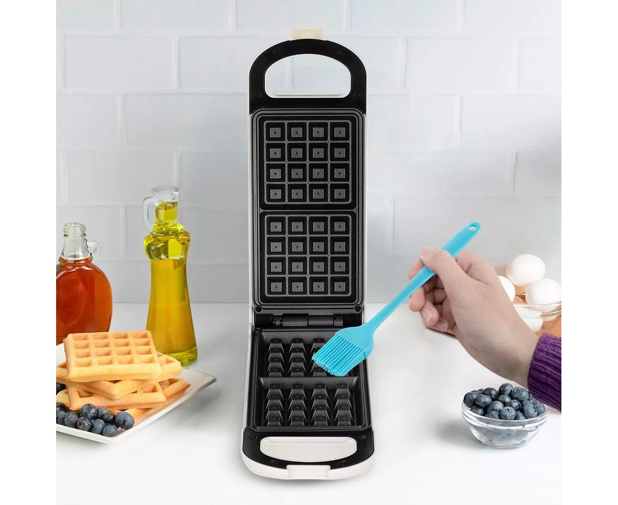 На формы вафельницы нанесено антипригарное покрытие. А также в комплекте с вафельницей идёт кисточка, которая поможет вам равномерно распределить масло по поверхности формы, сократив его расход и обеспечивая ещё более лёгкое приготовление вафель.