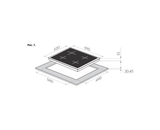 Глубина варочной поверхности, см: 51