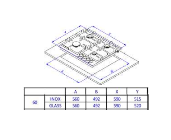 Мощность конфорок: 1*3,8/1*1,7/1*0,9 кВт