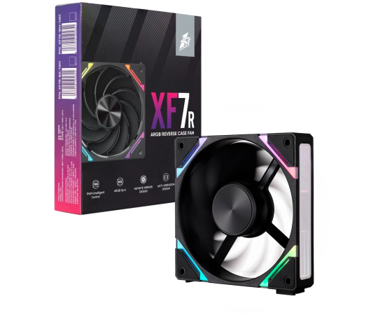 Вентилятор 1STPLAYER XF7R Black ( XF7R-BK-1IN1) / 120mm Reverse ARGB 3pin 5V PWM 4pin 12V 600-2000rpm 56.8cfm 33.12dBA