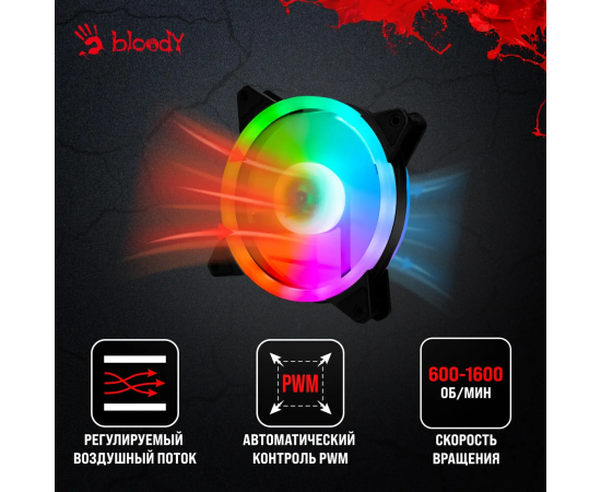Вентилятор Bloody BD-CF120ARGB4 ARGB (BD-CF120ARGB4-BK) 120х120x25 черный 4-pin 26дБ (упак. 1шт) Ret