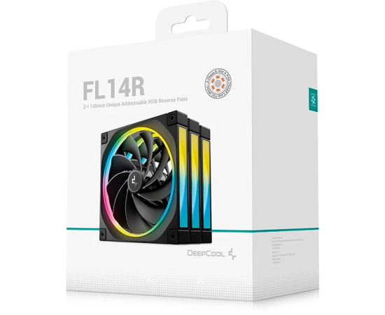 Вентилятор DEEPCOOL FL14R-3 in 1 140x140x25мм Reverse (PWM, ARGB, черный, 500-1700об/мин) Color Box