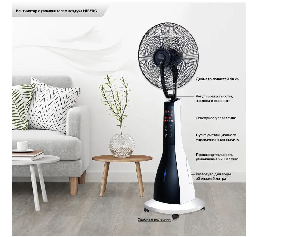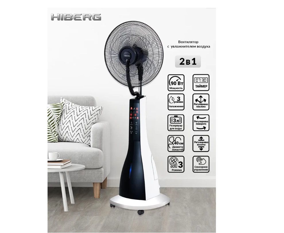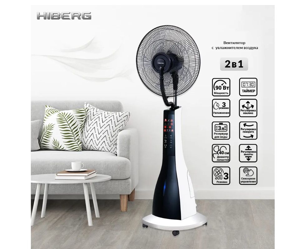Представляем вам напольный вентилятор с увлажнителем воздуха HIBERG FW 400 BW / B.