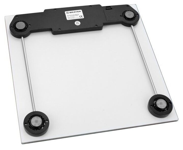 Напольные весы BRAYER BR3730, вес до 180 кг, разм 30*30 см, толщ.6 мм, диспл 96,6*43 мм, 1*CR2032