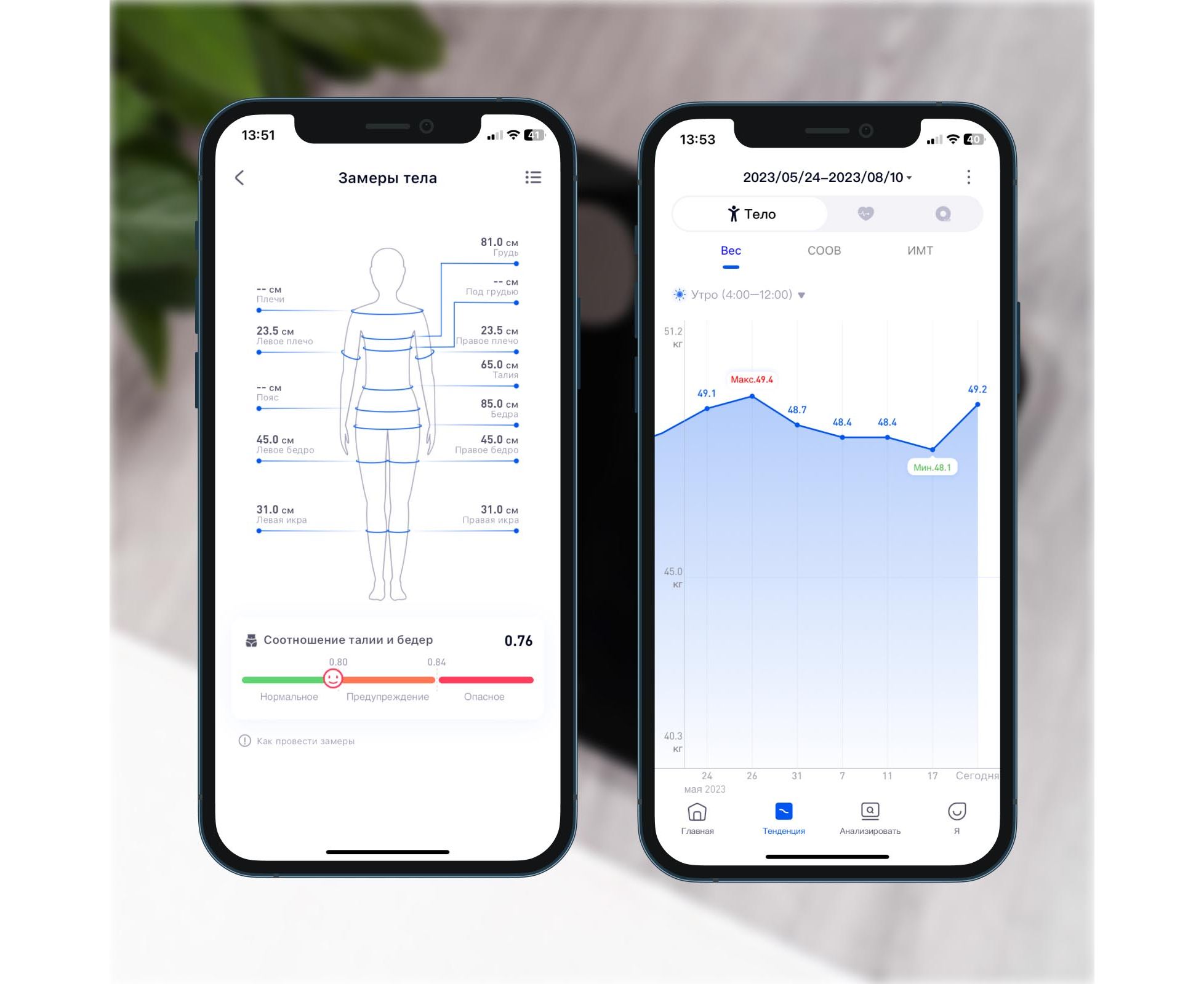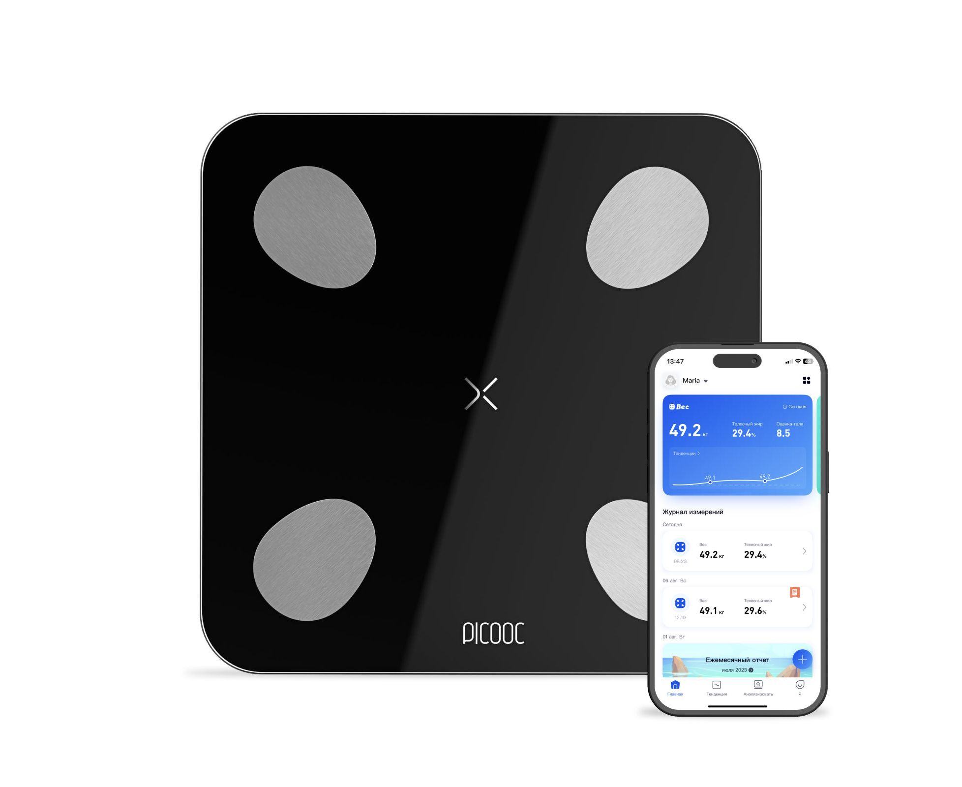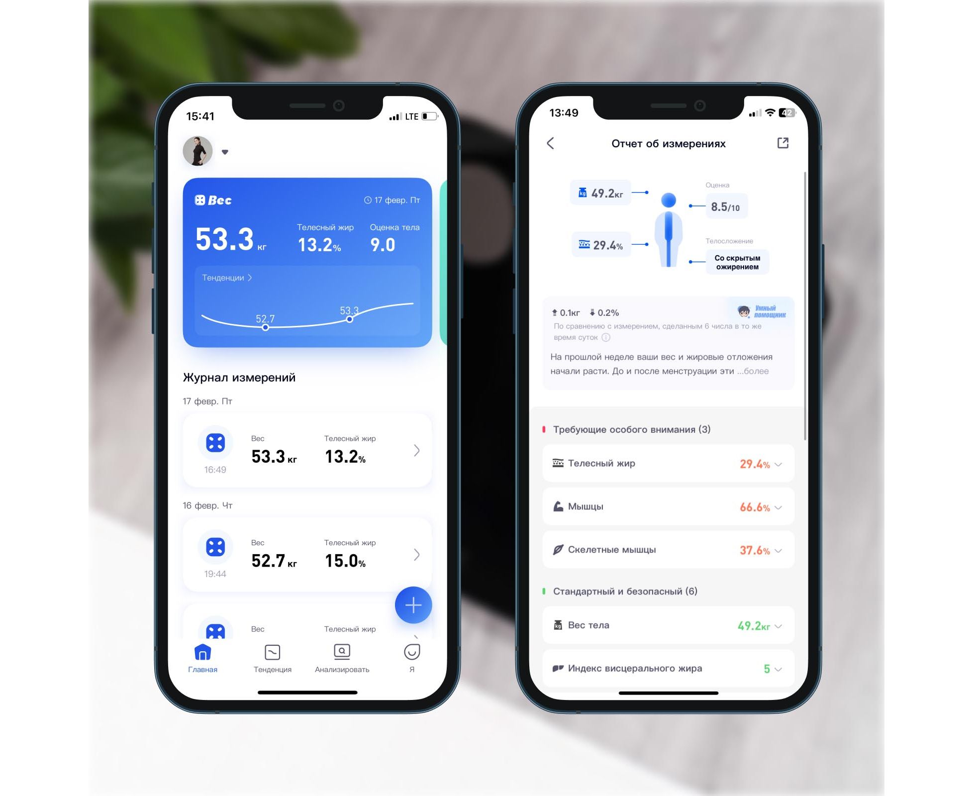 Поставьте в приложении цель — набор массы, похудение или поддержание формы — и получайте полезные советы для ее достижения. Каждое измерение сопровождается советом от Умного помощника: на что обратить внимание и как можно улучшить свою форму.