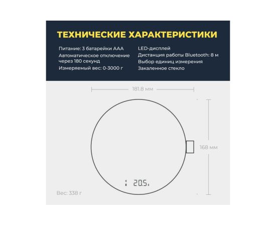 автоматическое выключение, последовательное взвешивание, Светящиеся символы дисплея, Сенсорное управление, Синхронизация данных в интернет