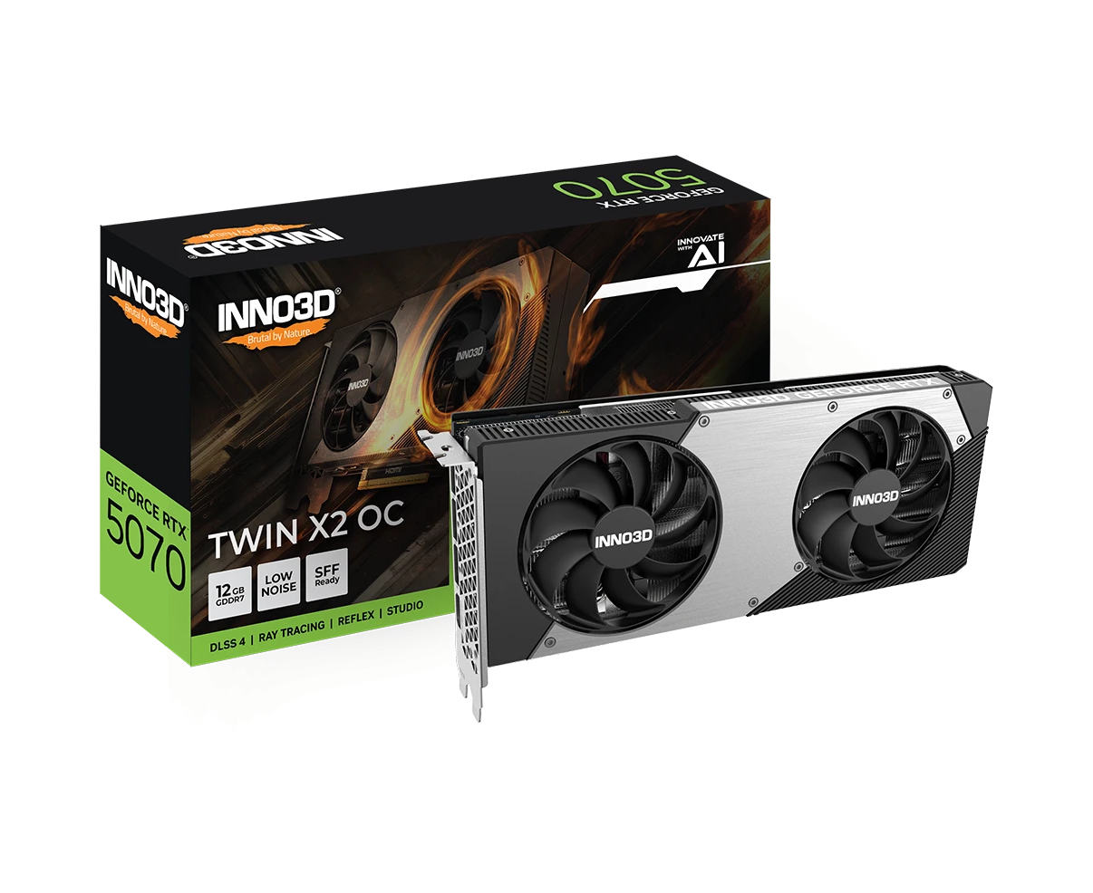 Видеокарта INNO3D RTX5070 Twin X2 ОС 12GB (N50702-12D7X-195064N) GDDR7 192bit 3xDP HDMI 2Fan RTL