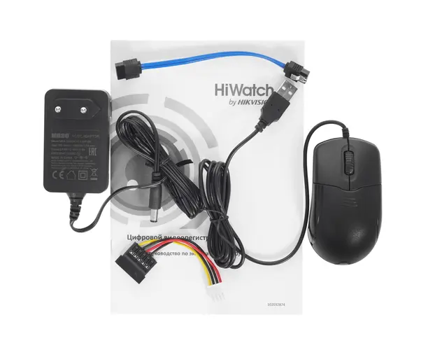 адаптер питания, документация, кабель SATA, мышь