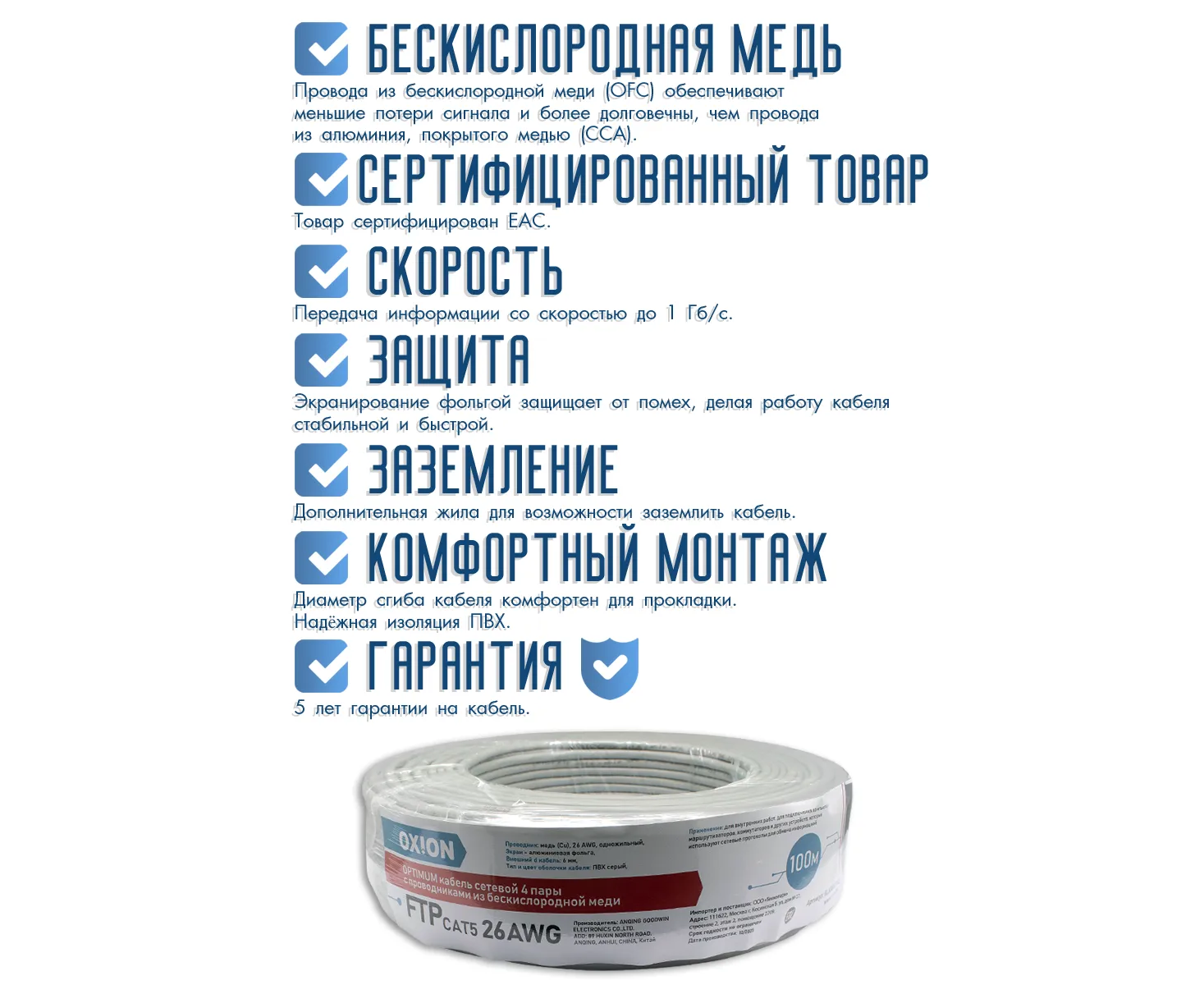 Витая пара, FTP cat5 26AWG 4 пары, Медь (Cu), 10 м
