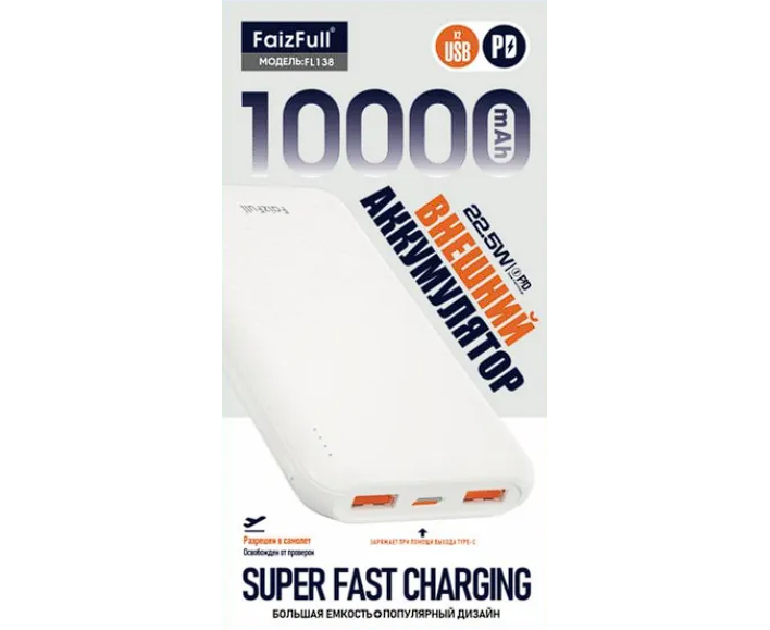 Внешний аккумулятор 10000mAh FaizFull FL138 PD 22,5Вт Белый