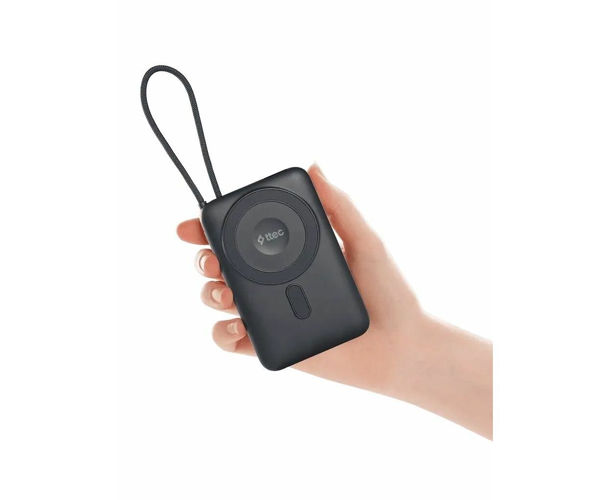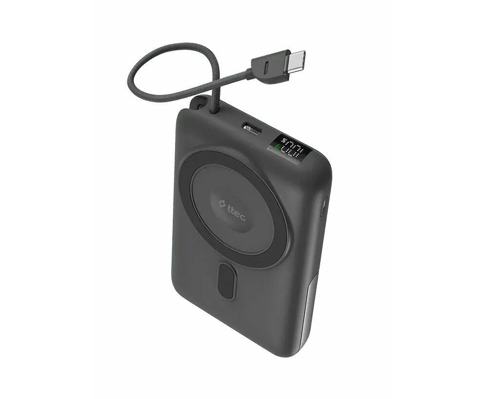 Внешний аккумулятор беспроводной TTEC Recharger M LCD 10000 mAh. MagSafe PD 20W Powerbank с кабелем USB-C и подставкой