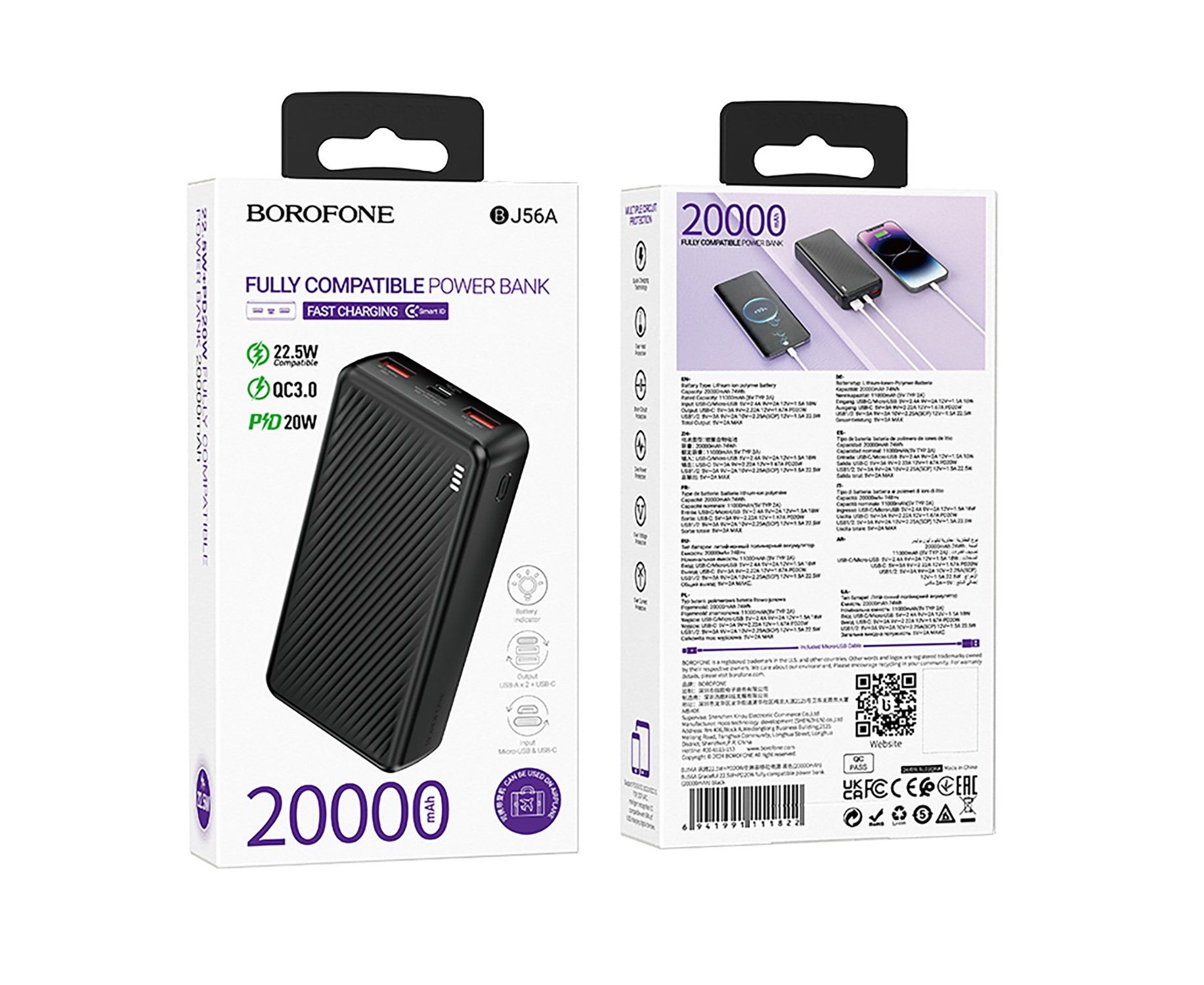 Внешний аккумулятор Borofone BJ56A 22.5W+PD20W 20000mAh Type-C/2Type-C/USB (black)(235106)