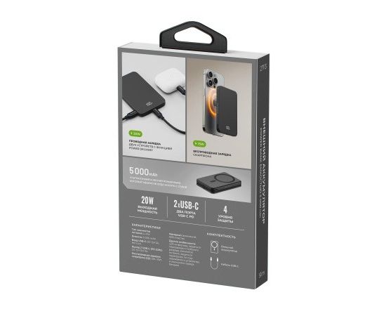 Внешний аккумулятор Breaking Slim, USB-C, 5 000 mAh, 3.0A, 20W, Mag•Safe, PD, LED (Черный)