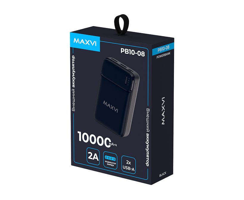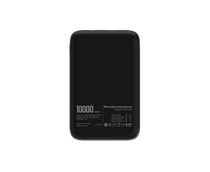 Внешний аккумулятор Maxvi PB10-08 10000мАч, 2A, 2хUSB/Type-C/MicroUSB