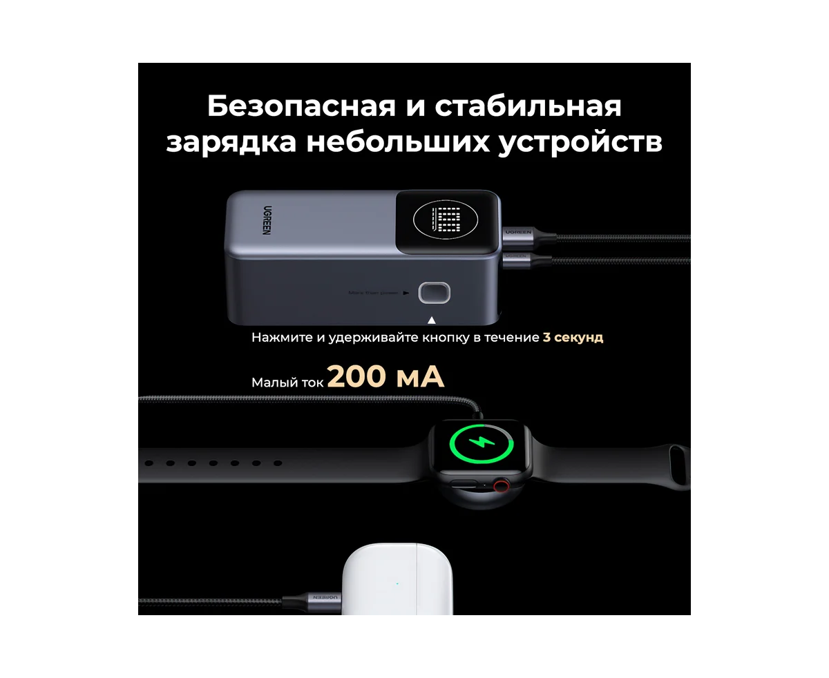 Портативное зарядное устройство PB724 (35526B) емкостью 12000 мАч с поддержкой быстрой зарядки до 100 Вт через порт USB-C и 22.5 Вт через USB-A. Компактный и легкий дизайн (310.6 г) делает его удобным для переноски. Заряжает устройства по протоколам PD, PPS, QC, FCP и другим, обеспечивая совместимость с большинством современных устройств. Оснащено LED-дисплеем для отображения уровня заряда и статуса работы.