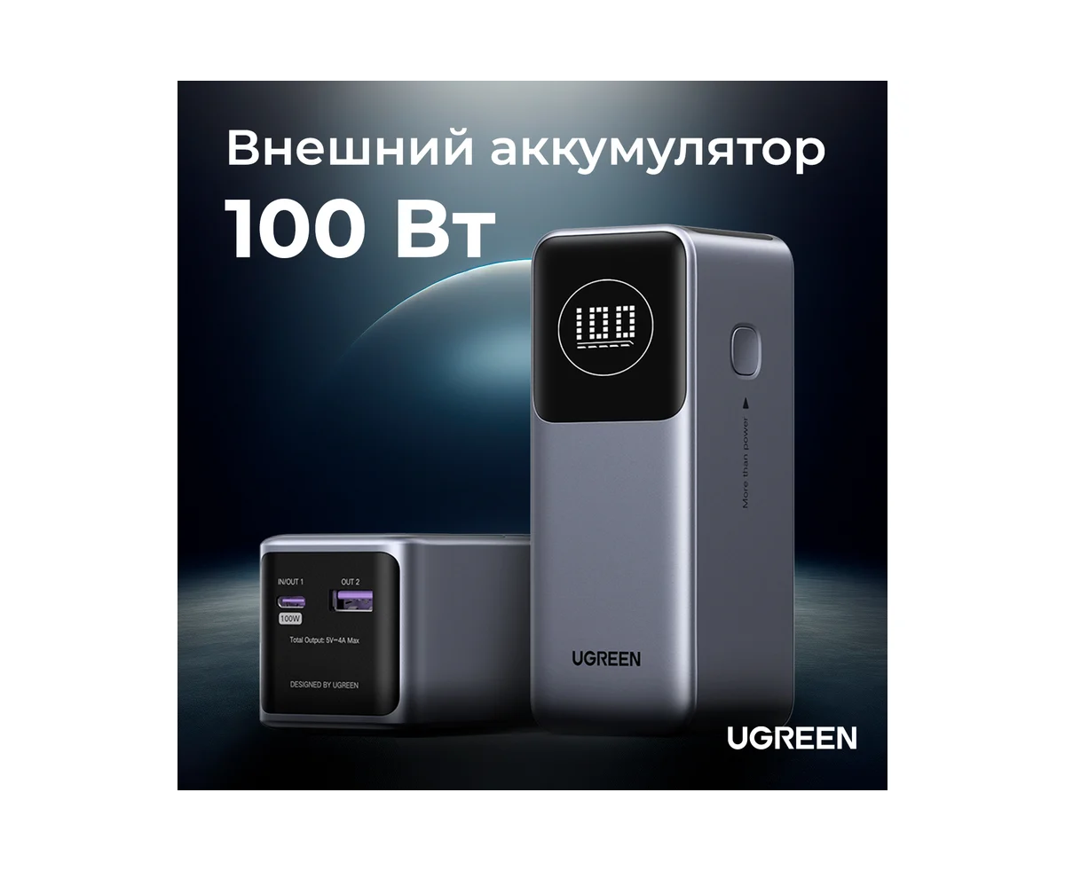 Внешний аккумулятор UGREEN PB724 (35526B) 12000mAh Quick Charging 100W Power Bank Gray