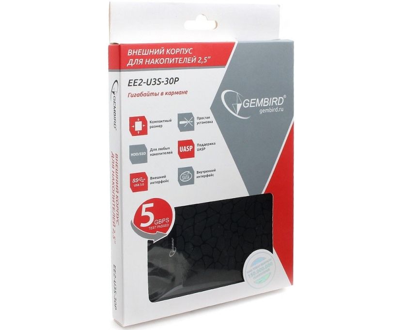Внешний корпус Gembird EE2-U3S-30P 2.5" черный, USB 3.0, SATA, до 2 Тб, пластик