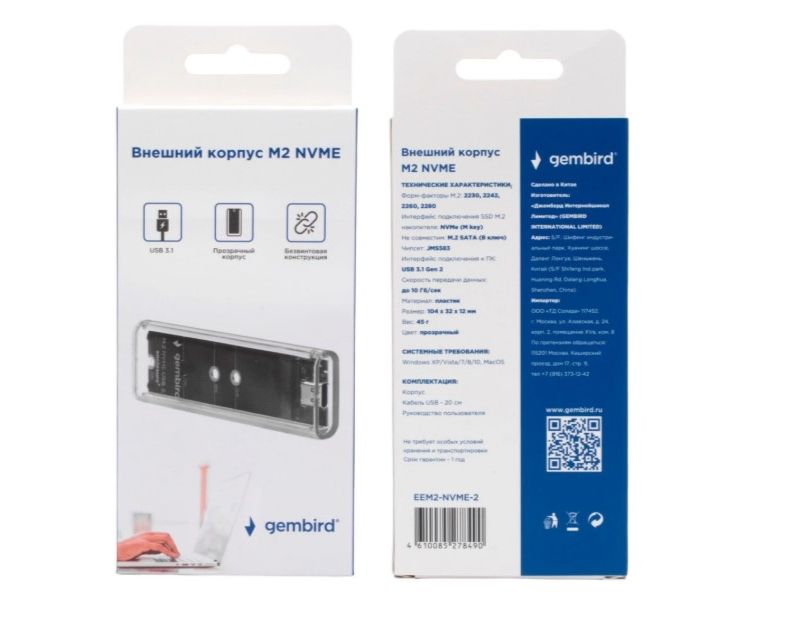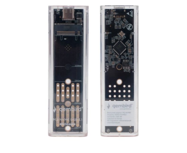 Внешний корпус Gembird EEM2-NVME-2 USB 3.1 для M2 NVME порт Type-С, пластик, прозрачный