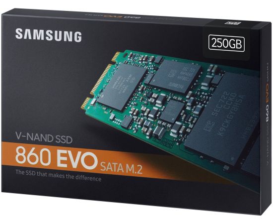 Внутренний SSD Samsung 250GB 860 Evo, SATA-III, R/W -550/520 MB/s, (M.2),2280, Samsung MJX, V-NAND, MLC