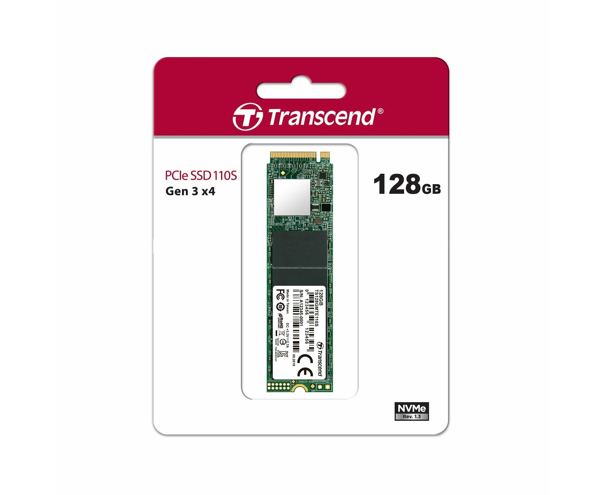 Внутренний SSD Transcend 128GB MTE110S, PCIe 3.0 x4, R/W - 1500/1800 MB/s, (M.2), 2280, 3D TLC NAND