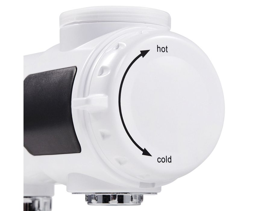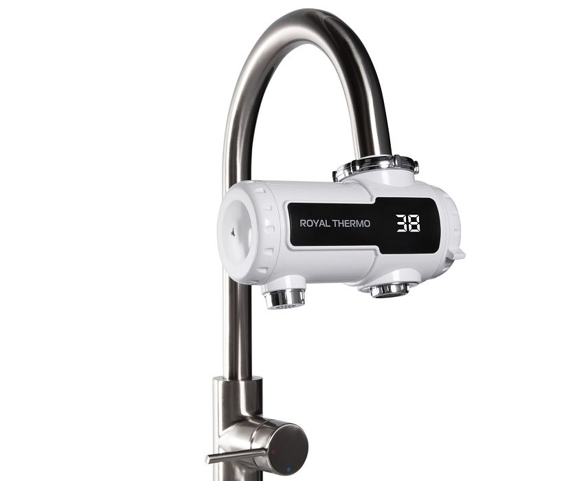 Небольшой проточный водонагреватель подходит для помещения любого размера. Он монтируется на действующий смеситель и абсолютно не занимает места в пространстве. Установленный на корпусе водонагревателя цифровой дисплей отображает температуру воды, позволяя контролировать степень нагрева с точностью до 1 градуса.