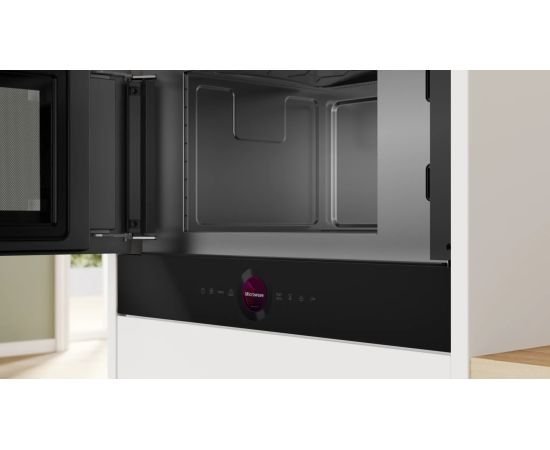 Встраиваемая микроволновая печь Bosch BFL9221B1 оснащена автоматическими программами в количестве 7 штук, они помогут идеально приготовить пищу. Имеется функция QuickStart в течении 30 секунд устройство включает максимальную мощность для быстрого процесса приготовления пищи. Управление осуществляется с помощью сенсорного TFT дисплея, также, есть усиленный уровень нагрева Boost.