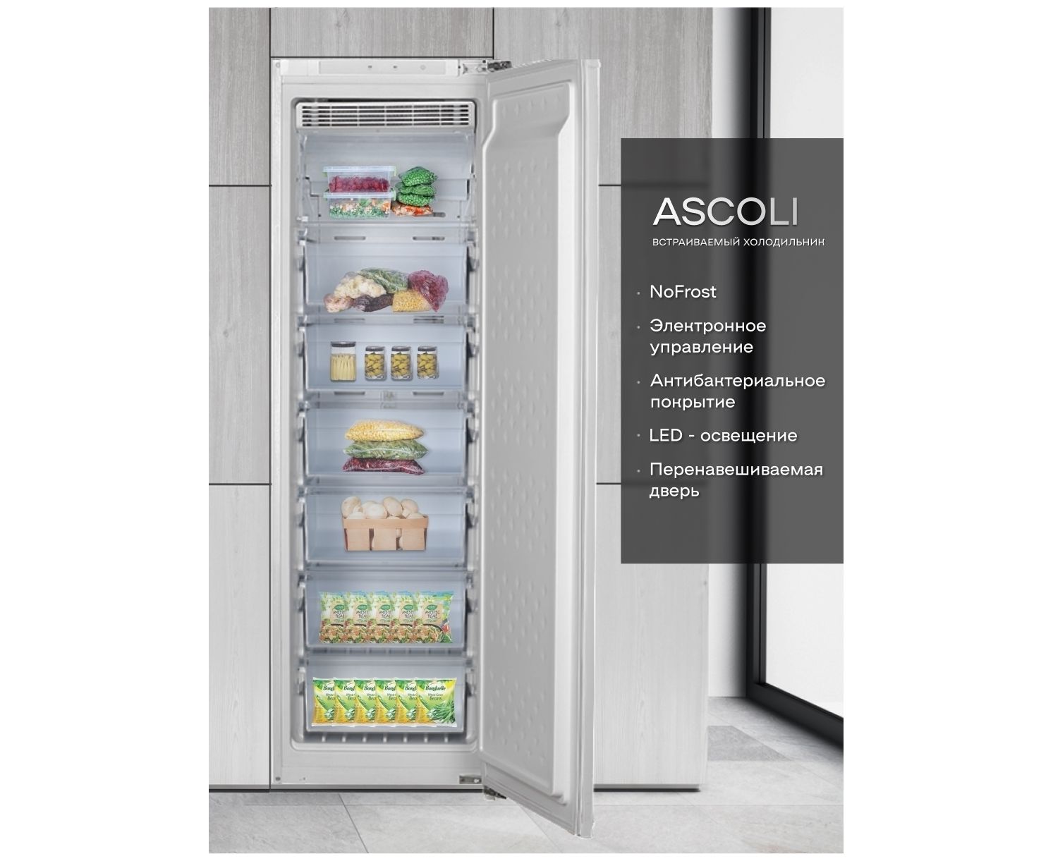 Встраиваемая морозильная камера Ascoli ASF230WBI белый