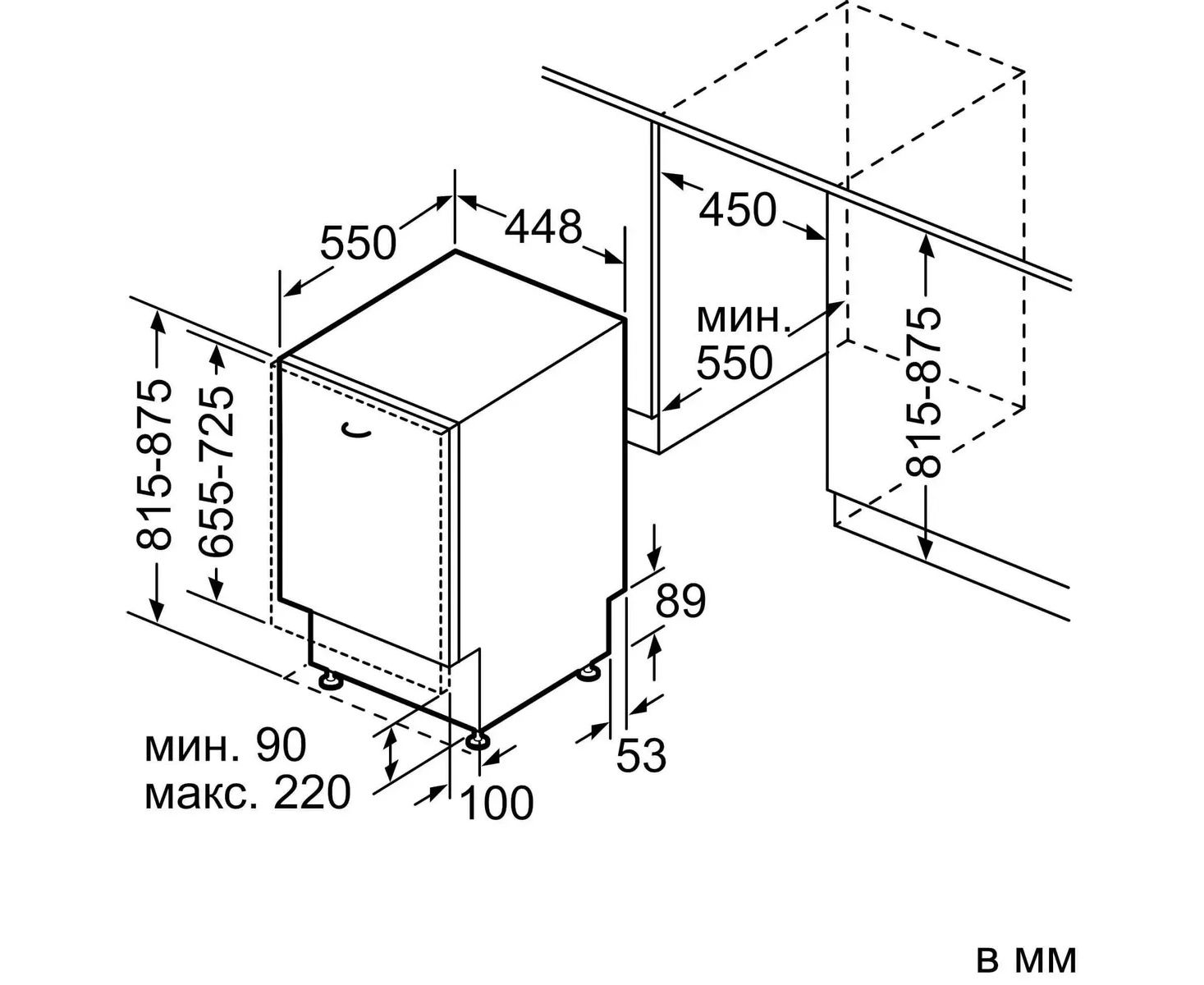 Высота ниши для встраивания(мин)