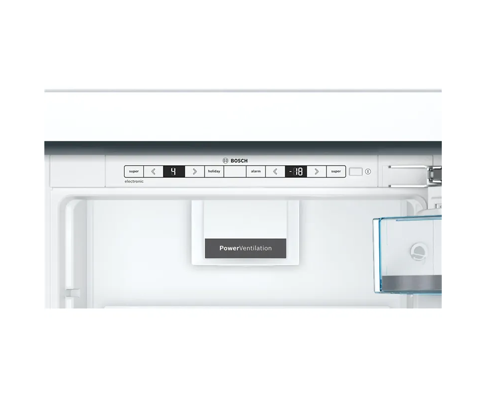 Встраиваемый холодильник Bosch KIN86AF3M8 с нижней морозильной камерой и общим полезным объемом 255 л. Полки комбинированного холодильника-морозильника выполнены с «металлической» аппликацией. Установить и регулировать рабочие температуры в камерах можно на панели с LCD дисплеем. Удобно хранить крупногабаритные замороженные продукты в контейнере BigBox. В двухкамерном KIN86AF3M8 фиксированный фронт.