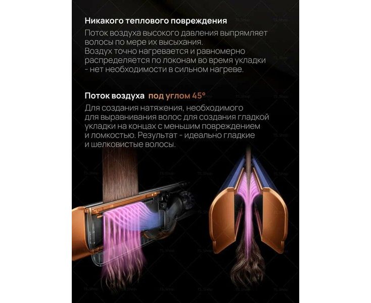 Интеллектуальный контроль тепла регулирует температуру воздушного потока до 16 раз в секунду, предотвращая чрезмерное тепловое повреждение и защищая естественный блеск волос.