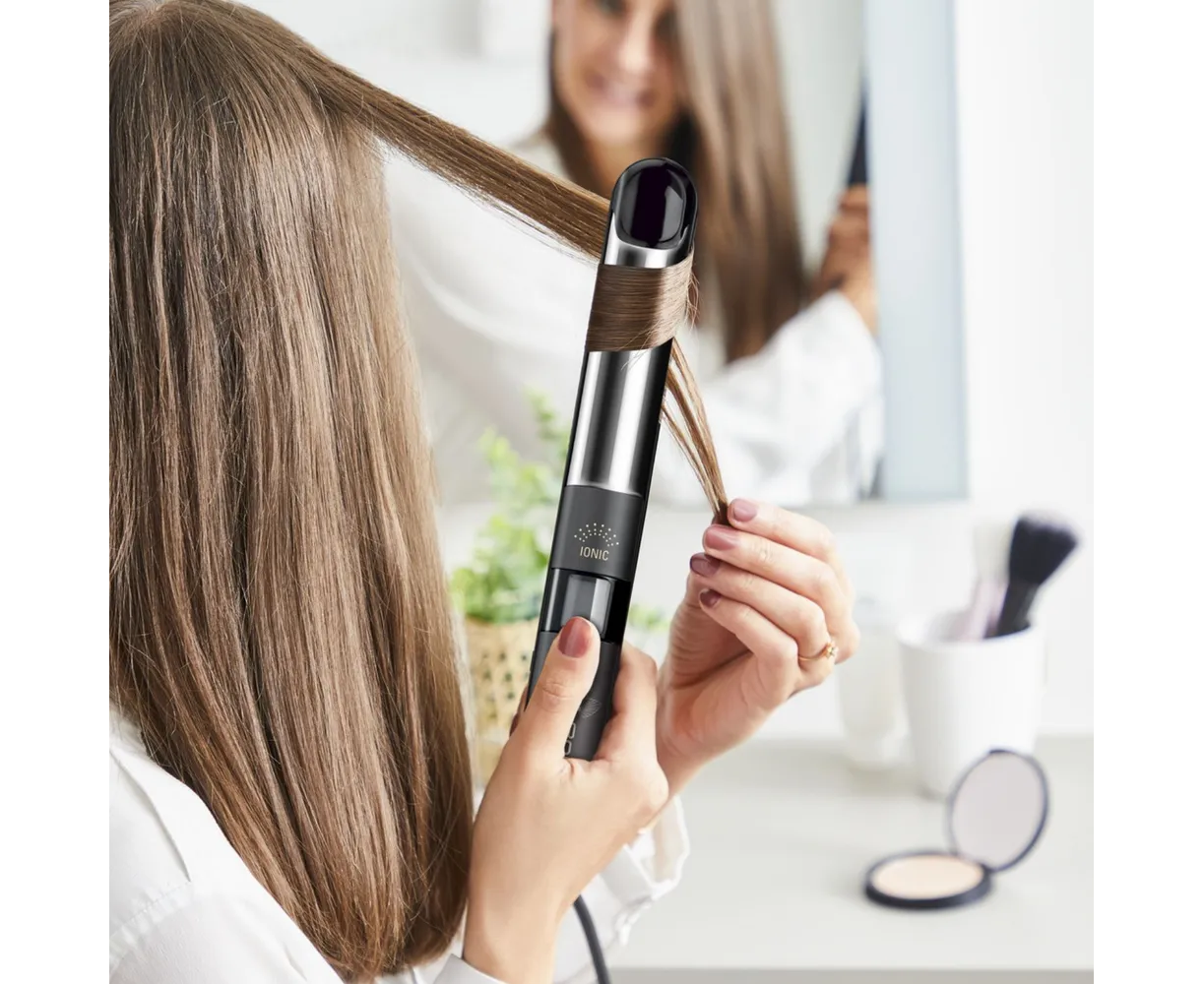 Особенности фена, выпрямителя волос: Вращение шнура 360°, Дисплей, Петля для подвешивания, Плавающие пластины, Фиксатор пластин