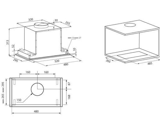 Габариты ниши для встраивания (ВхШхГ), см