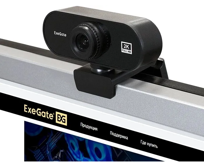 Web камера ExeGate Stream C940 2K (EX299091RUS) 5Мп, 2560x1440, 30fps, H.264, ручной фокус, 4-линзовый объектив (стекло), микрофон с шумоподавлением