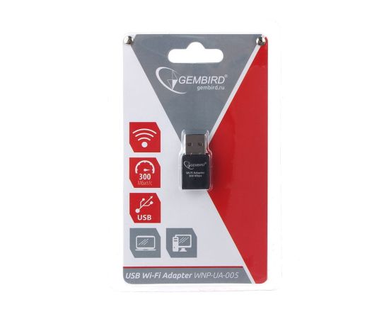 GEMBIRD WNP-UA-005, W-Fi USB Адаптер мини, 300Mbps, 2.4GHz, 802.11b/g/n