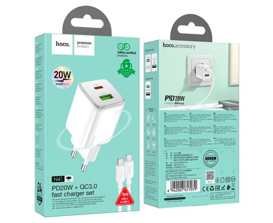 Зарядка Hoco N41 Almighty PD20W+QC3.0 Charger Set (Type-c to Type-c)(EU) - White
