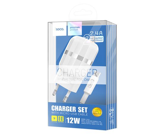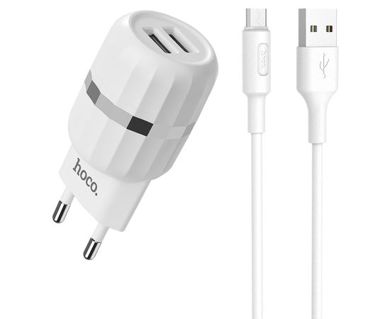 Сетевое зарядное устройство HOCO C41A Wisdom 2xUSB с Кабелем USB - Micro, 2.4A, 10.8W, белый