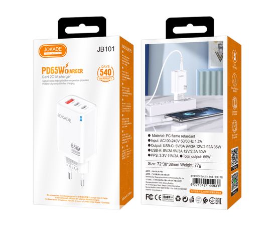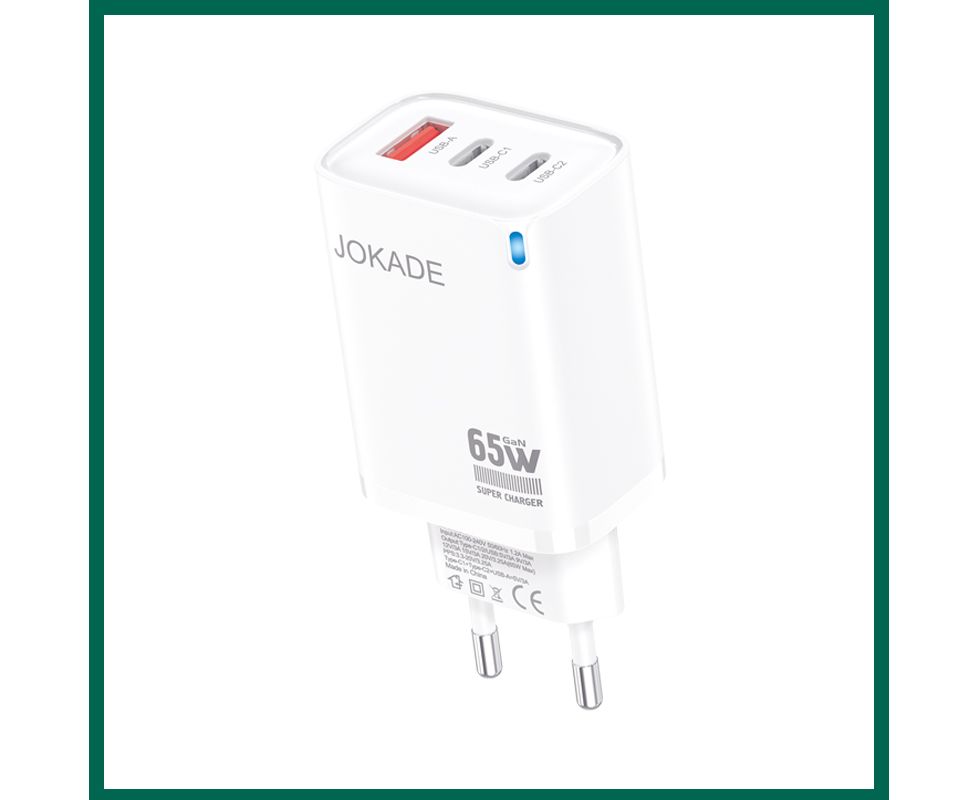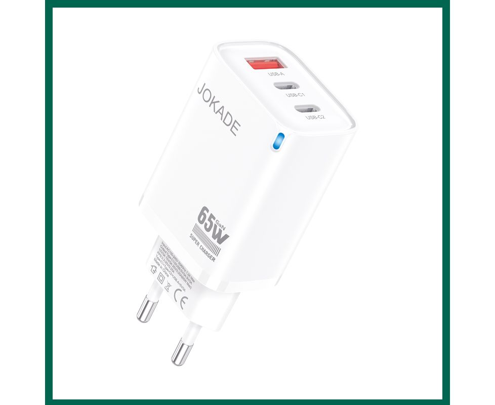 Зарядное устройство JOKADE JB101 GAN 65W 1 USB 2 USB-C white