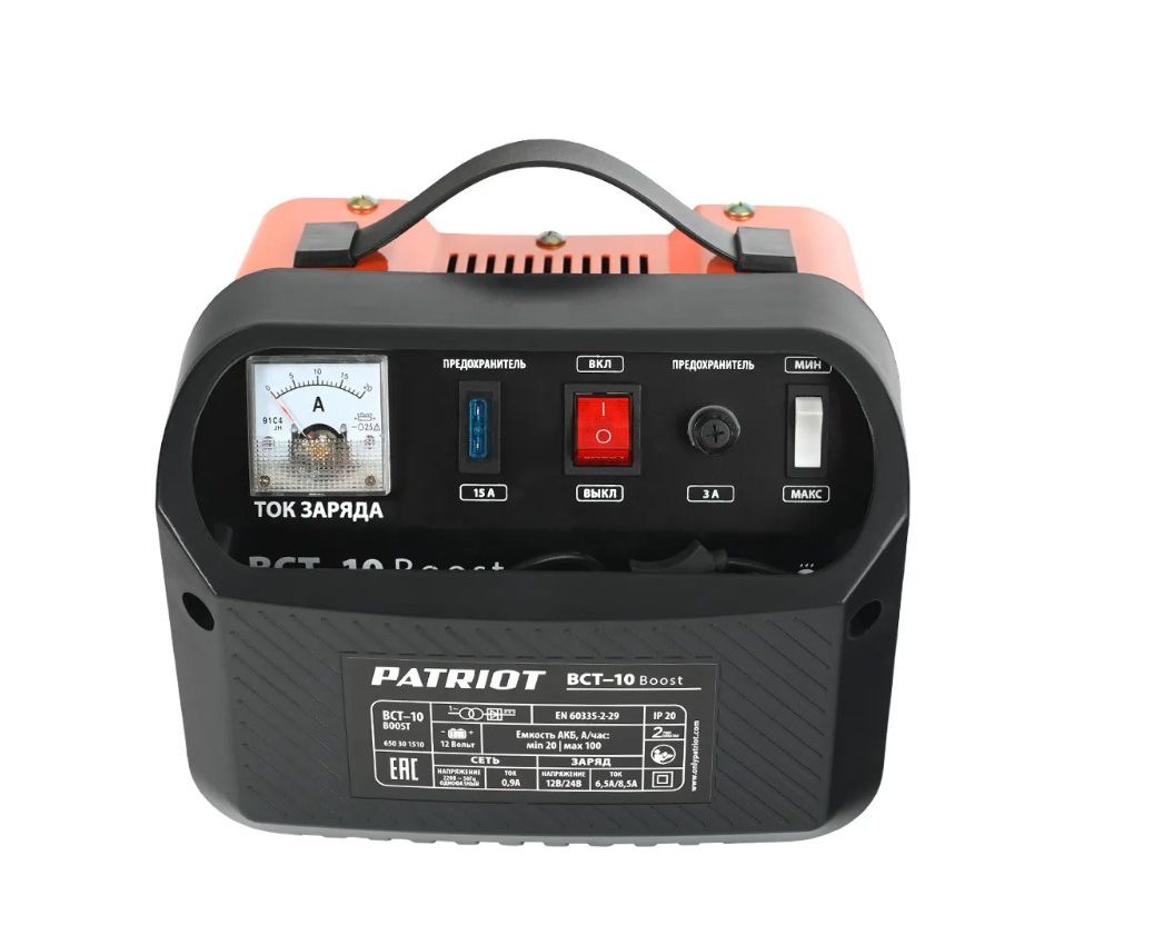 Заряднопредпусковое устройство PATRIOT BCT-10 Boost 650301510 применяется в сервисах или непосредственно владельцем автомобиля. Небольшие габариты и вес позволяют держать аппарат в машине. Изделие предназначено для работы со свинцовыми или кислотными аккумуляторами. Имеется режим ускоренной зарядки с повышенной силой тока. Встроенная защита обеспечивает устойчивость к перегрузкам, определяет полярность (защита от неправильного подключения), предохраняет от короткого замыкания. Перед панелью управления располагается отсек для хранения проводов.