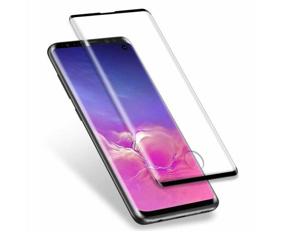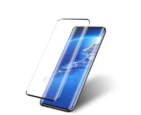 Защитное стекло для Samsung S20, Full Glue 3D, с вырезом под отпечаток, закругленное, прозрачный+черная рамка