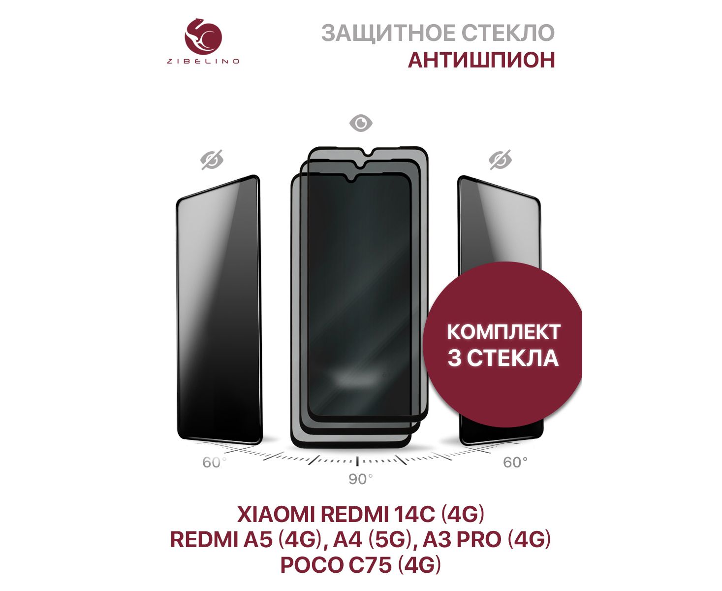 Комплект из 3 шт защитное стекло антишпион для Xiaomi Redmi A5 (4G), Xiaomi Redmi 14C (4G), Xiaomi Redmi A3 Pro (4G), Xiaomi Redmi A4 (5G), Xiaomi Poco C75 (4G), линейка Private (антишпион), с рамкой с минимальным отступом от краев легко устанавливается и защищает весь экран смартфона. Благодаря специальной обработке, изображение на экране видно только под прямым углом. Со стороны экран будет выглядеть черным. На экране смартфона не остается отпечатков, он не бликует от солнца и ламп дневного света. Защитное стекло антишпион Редми 14 С 4G позволяет скрыть информацию на экране вашего устройства от посторонних глаз. Больше никто не подсмотрит в ваш экран через плечо (например, в общественном транспорте). Клеевой слой по всей поверхности позволяет легко установить стекло без пузырей (на упаковке инструкция по установке стекла). Противоударное стекло антишпион Поко С75 4G изготовлено из материала повышенной прочности (9Н), надежно защитит от сколов и повреждений и дорогостоящего ремонта тачпада. Стекло Поко С75 4G с рамкой произведено с использованием технологии обработки краев - они не крошатся, не цепляются. Защитное стекло Редми А4 5G с олеофобным покрытием, что предотвращает появление следов от пальцев. Защитное стекло упаковано в надежную фирменную упаковку из плотного картона, также защищено дополнительным ложементом из гофрокартона. Защитное стекло шпион Redmi A 5 4G поставляется в красивой упаковке, подойдет для подарка друзьям и близким. Каждое защитное стекло проверяется перед отправкой. В комплекте: защитное бронь стекло Редми А3 Pro 4G, влажная салфетка для обезжиривания экрана, ткань из микрофибры, стикер для удаления пыли. Изображение стекла и устройства на упаковке являются условными.